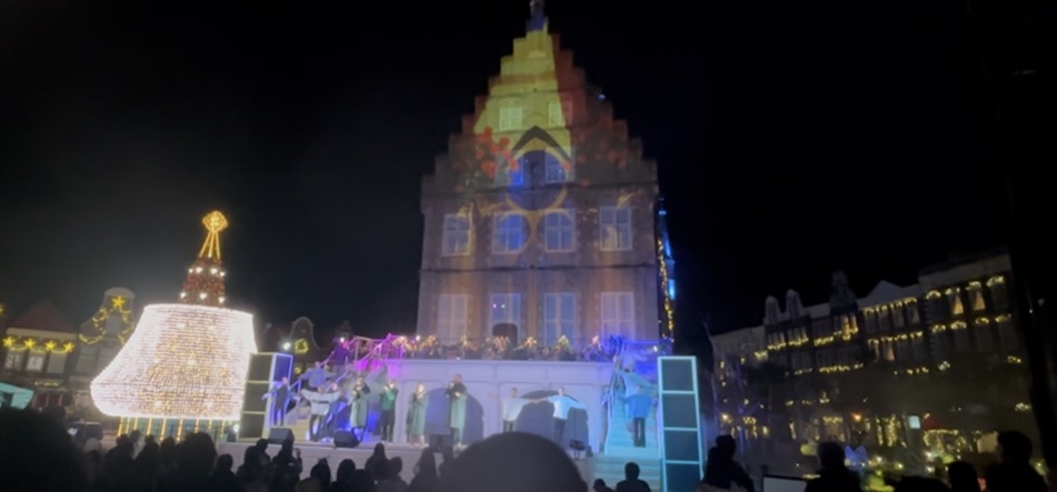 コーラスや聖歌隊によるステージがあり、街中に音と光の演出が広がる時間帯があります。