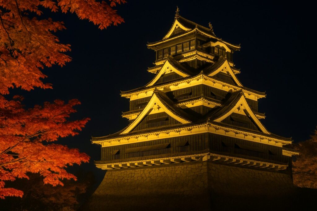 夜には幻想的なライトアップイベント「城あかり」も人気です。