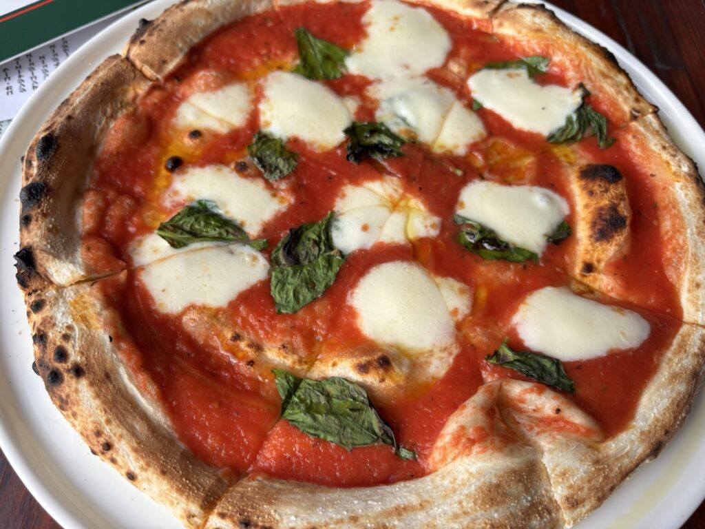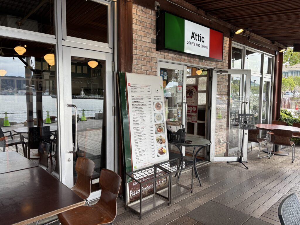テラス席のあるイタリアンレストラン Attic をチョイス。港を眺めながらマルゲリータを味わう。