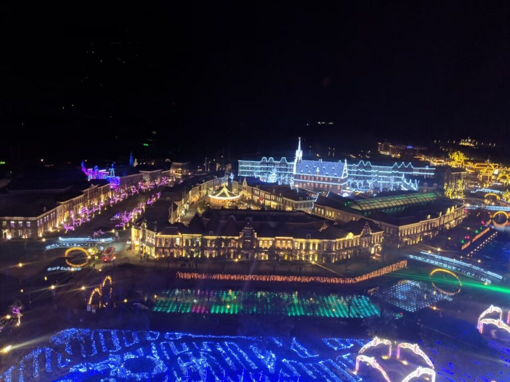 夜の花火・イルミネーション、昼のヨーロッパ風街並み、ホテル滞在ならではのゆったり感。