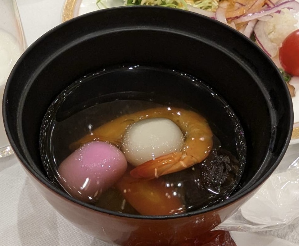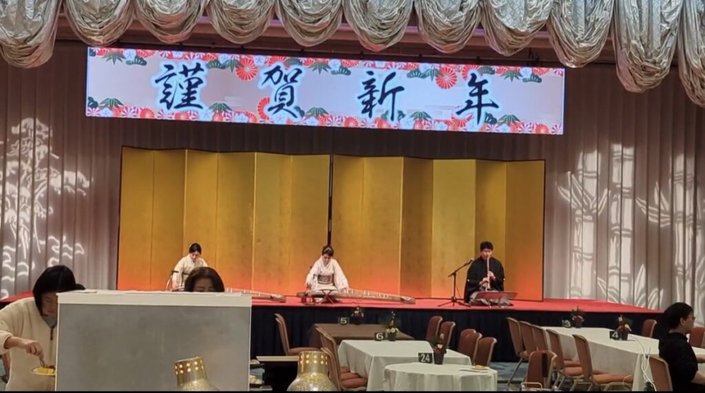 普段よりも広いステージ付きの会場で、琴や三味線などの生演奏が流れる中で朝食をいただけるのです。まるで料亭にいるかのような雅な空気に包まれながら、家族みんなで正月の朝を迎える――これ以上の幸せはない、と本気で思いました。